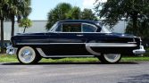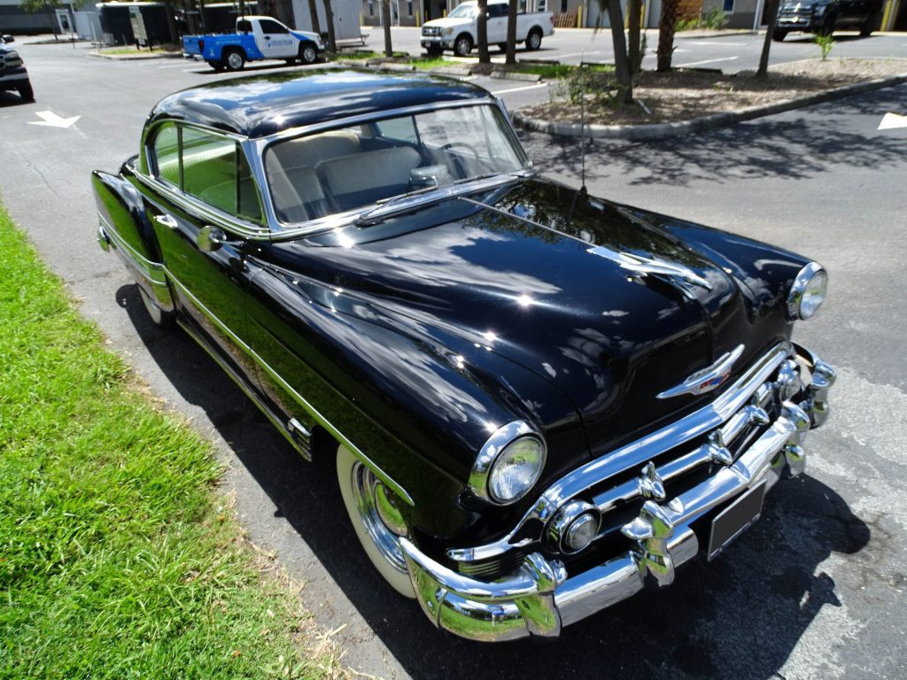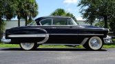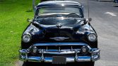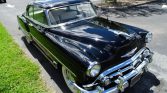 This is a true 1953 Chevrolet Bel Air painted with Black and White high gloss paint, paired with chrome dog dish wheels and wide white walls tires that makes this a head turner! The interior is all original and still retains the thick plastic seat covers keeping the upholstery in great shape.