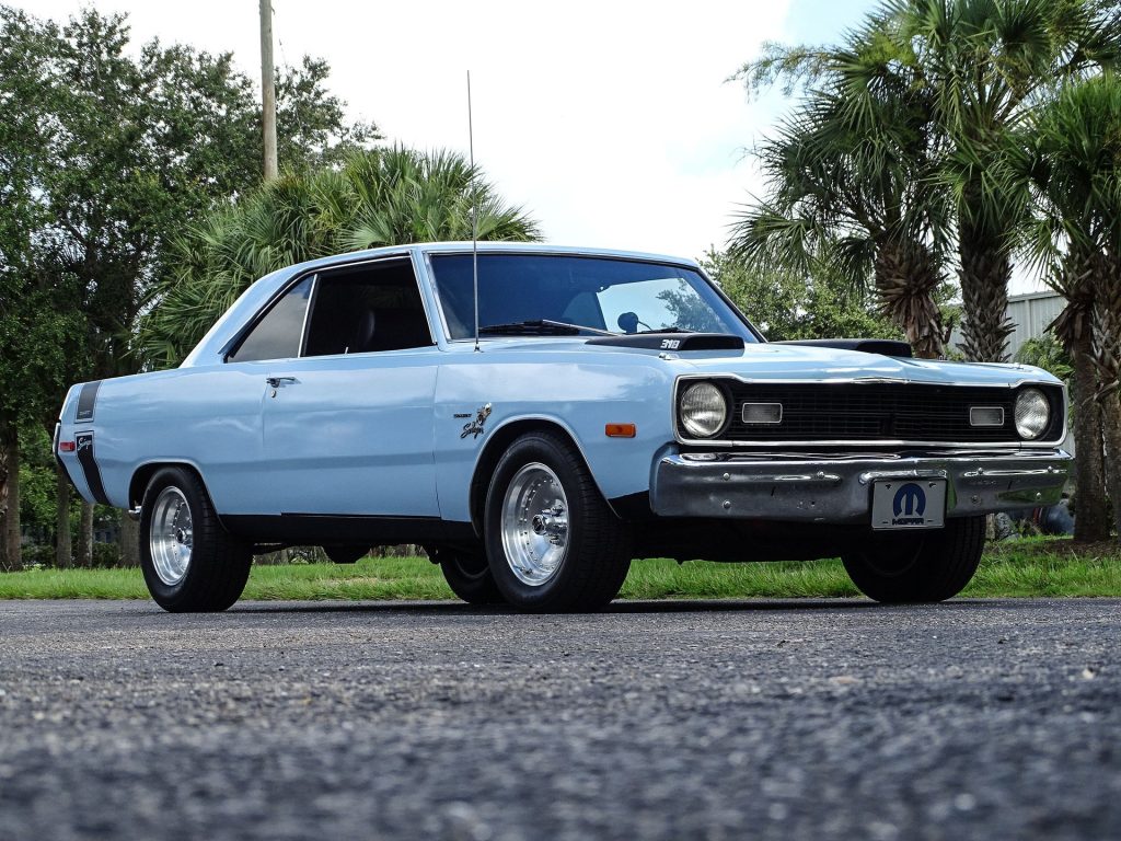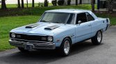 Check out this tough looking 1973 Dodge Dart Swinger. This is the car your mother warned you about, masculine lines, aggressive stance, and all the right accessories in all the right places. It doesn't get much better than this Light Blue 73 Dodge Dart Swinger with its curves, chrome accents, chrome American Racing Wheels, and bold Swinger stripes make it one muscle car no one will forget. The front wheels are wrapped with BF Goodrich P225/60R15, and the…
