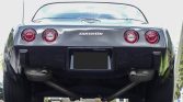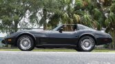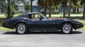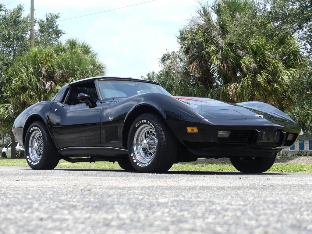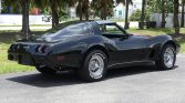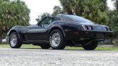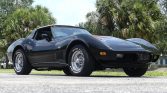 Check out this stunning 1979 Chevrolet Corvette. The Black paint is incredibly deep and is set off with red stripes on the hood with “Corvette” showing through. The headlights have been converted to electric, so there are no worries about typical headlight issues with this C3 Corvette. The wire wheels are wrapped in Futura Super Sport radial tires. The interior is a show-stopper with black and red seats with the Corvette emblem and name embroidered into the headrests. A padded armrest is essential for these C3 Corvettes, and this car has one. The radio has been upgraded to an AM/FM/CD player that compliments this well optioned Vette. Power windows, power locks, seat belts, tilt steering wheel, power steering, power disc brakes, T-tops and cold R-134 A/C make for a great cruiser. Its not just good looks that set this car apart; it also has much more power than your stock 79 Corvette. A GM Crate 350 is topped with an Edelbrock Performer EPS intake, Holley 4-barrel carburetor and Hooker Headers that provide a great rumble from the big dual exhaust. The HEI setup provides a reliable and strong spark and the chrome air cleaner gives the engine a show quality finishing touch. The engine is bolted to a Turbo 350 3-speed automatic transmission that makes long cruises effortless. This Corvette is topped off with mirrored T-Tops and the T-Top bag is included with the car.